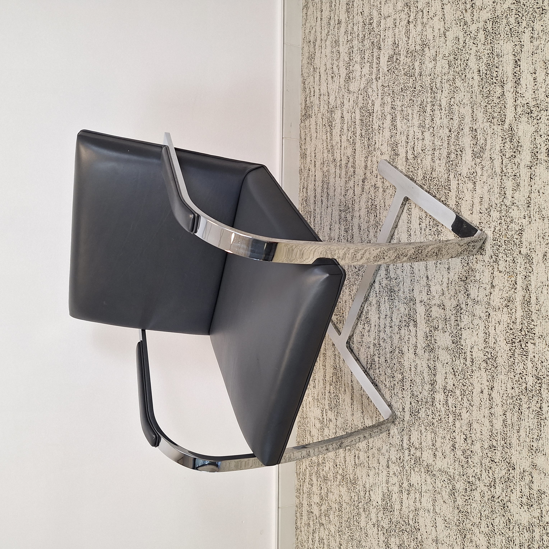 The Brno Chair, designed by Mies van der Rohe for Knoll, is the 'flat bar' model and is upholstered in antracit leather.