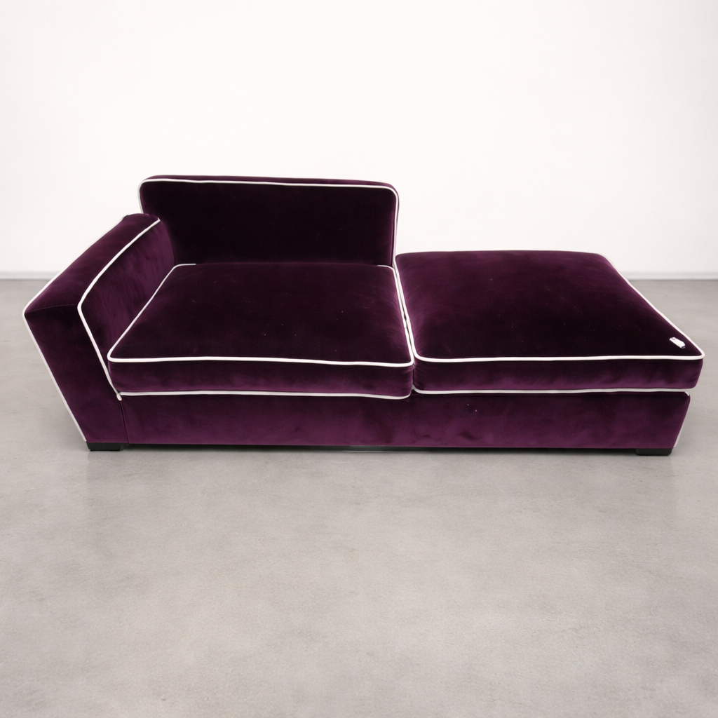 Comfortable zetel met velours bekleding in paarse kleur en lila boord.